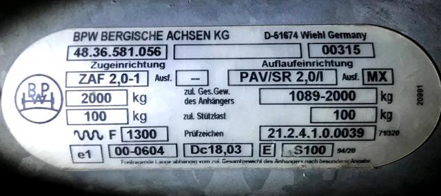 Jag har iaf kollat skyltar i vagnen nu. På "Kabeskylten" står det 1500Kg som är totalvikten. Jag vet att jag kan väga upp den till 1600kg så det klarar ju axeln iaf. På draget så finns det en annan skylt men jag vet inte om den beskriver chassit och axeln (2000kg) eller om det gäller för påskjutsbromsen. Är det här man skulle kunna hitta ett nummer för att hitta reservdelar?  Oavsett, dämparna jag länkade till tidigare klarar 13000-1800kg så om jag inte hittar annan information borde väl de funkar om det är ok med att fästet ser lite olika ut.